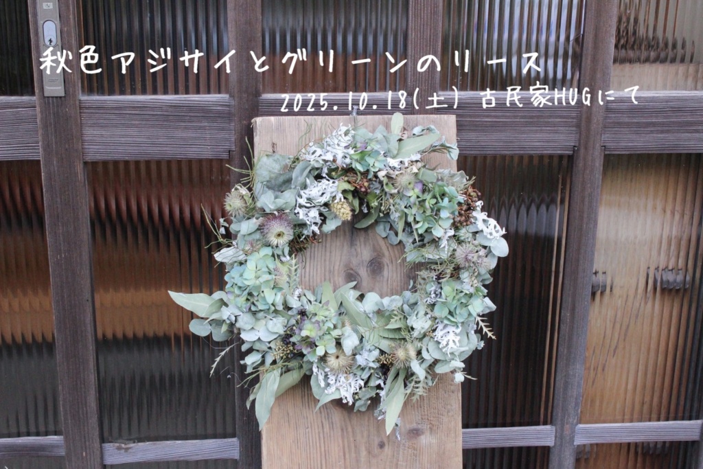 秋色アジサイとグリーンのナチュラルリース作りを予定しています。